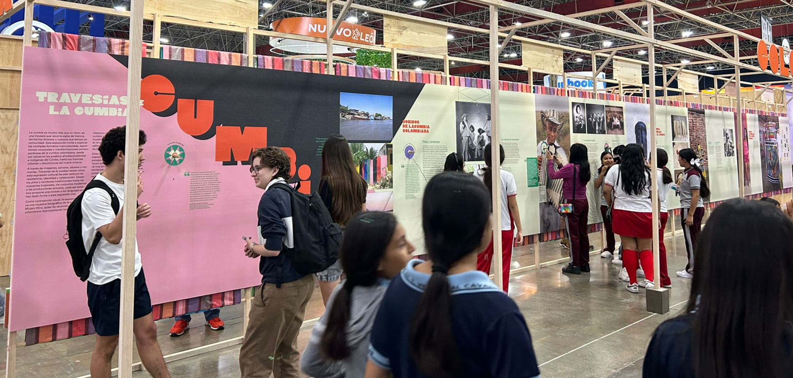 La exposición, instalada en el estand principal de Colombia, invita a explorar los múltiples formatos instrumentales, expresiones corporales y lenguajes sonoros que han acompañado la evolución de la cumbia, desde los pueblos afrodescendientes e indígenas hasta sus fusiones urbanas y electrónicas.